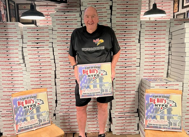 An annual tradition that stretches back to days after the tragic events of 9/11/01, the “9/11 Day of Giving” at Big Bill’s NY Pizza is the brainchild of owner Big Bill Ficke . It continues as a positive tribute to those lost so they are never forgotten. Ficke held the first fundraiser in 2001, with the money going to help families of New York firefighters. The event created such positive momentum, Ficke decided to make it an annual event.